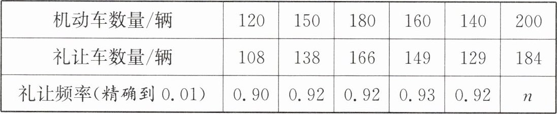 (3)因为800×0.92=736,所以估计礼让行人的机动车有736辆.