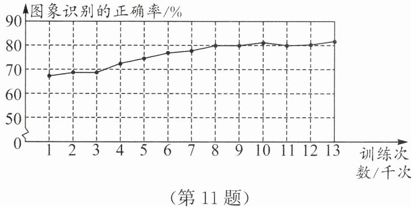 几何直观 图象识别是人工智能领域的一个重要分支. 如图,某人工智能模型图象识别的正确率随着训练次数的增加而逐渐趋于稳定. 现用该模型识别100幅图象,则被正确识别的图象估计有