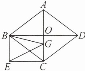 如图,菱形 $ABCD$ 的对角线 $AC$,$BD$ 相交于点 $O$,且 $AC = 6$,$BD = 8$,分别过 $B$,$C$ 两点作 $AC$ 与 $BD$ 的平行线相交于点 $E$。若点 $G$ 在直线 $AC$ 上运动,则 $BG + EG$ 的最小值为
