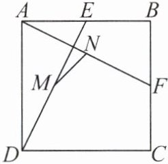如图,在正方形 ABCD 中,E,F 分别为边 AB,BC 的中点,AE = $\sqrt{2}$,连接 AF,DE,N,M 分别为 AF,DE 的中点,连接 MN,则 MN 的长为