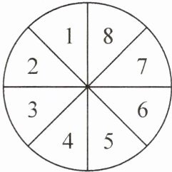 抽象能力 如图,圆形转盘被平均分成 $ 8 $ 个区域,每个区域分别标注数字 $ 1 $,$ 2 $,$ 3 $,$ 4 $,$ 5 $,$ 6 $,$ 7 $,$ 8 $。任意转动该转盘一次,当转盘停止转动时,有下列事件:① 指针落在标有 $ 5 $ 的区域;② 指针落在标有 $ 10 $ 的区域;③ 指针落在标有奇数的区域;④ 指针落在能被 $ 3 $ 整除的区域。其中,发生概率最大的事件是