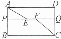 如图,在矩形 $ABCD$ 中,$AB = 6$,$AD = 10$,$P$,$Q$ 两点分别在 $AB$,$CD$ 上,$PQ // AD$,线段 $EF$ 在 $PQ$ 上,且 $EF = 2$,连接 $AE$,$CF$,则 $AE + CF$ 的最小值为(