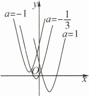 13. 如图,已知二次函数 $ y = (x - 3a)^2 - (3a + 2) $,当 $ a $ 取不同的值时,其图像构成一个“抛物线系”.图中分别是当 $ a = -1 $,$ a = -\frac{1}{3} $,$ a = 1 $ 时二次函数的图像,则它们的顶点 $ (x,y) $ 所满足的函数表达式为