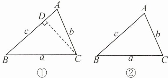 证明:如图①,过点$C$作$CD⊥ AB$于点$D$. 在$Rt\triangle BCD$中,$CD = a\sin B$,在$Rt\triangle ACD$中,$CD = b\sin A$,所以$a\sin B = b\sin A$,所以$\frac{a}{\sin A}=\frac{b}{\sin B}$. 根据上面的材料解决下列问题: