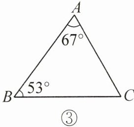 (2)如图③,规划中的一片三角形区域需美化. 若$\angle BAC = 67^{\circ}$,$\angle ABC = 53^{\circ}$,$AC = 80m$,求这片区域的面积.(结果保留根号,参考数据:$\sin 53^{\circ}\approx0.8$,$\sin 67^{\circ}\approx0.9$)