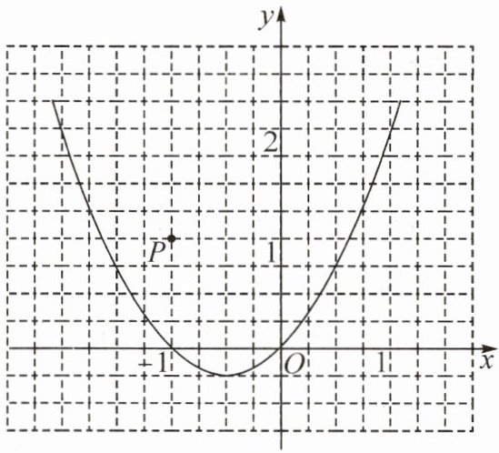 (3)如图,$ P $是平面直角坐标系中一点,且在网格的格点上,请选择一种适当的平移方法,使平移后二次函数图像的顶点落在点 $ P $处,写出平移后二次函数图像的函数表达式,并判断点 $ P $是否在函数 $ y = \frac{1}{2}x + \frac{3}{2} $的图像上,请说明理由。