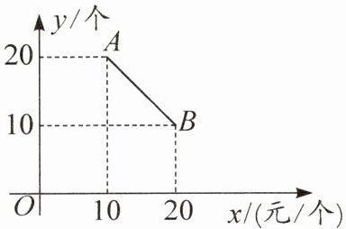 3. (2025·江苏淮安模拟)某食品零售店新上架一款冷饮产品,每个成本为 8 元. 在销售过程中,每天的销售量 $ y $(个)与销售价格 $ x $(元/个)之间的关系如图所示,当 $ 10 \leqslant x \leqslant 20 $时,其图像是线段 $ AB $,则该食品零售店每天销售这款冷饮产品的最大利润为
