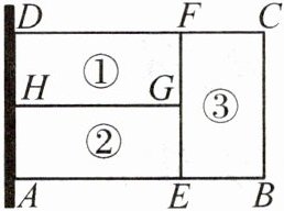 答案:7. 300 解析:因为三块矩形区域的面积相等,所以矩形$AEFD$的面积是矩形$BCFE$面积的2倍,所以$AE=2BE$.设$EF=BC=x$ $m$,$BE=FC=a$ $m$,则$AE=HG=DF=2a$ $m$.因为$DF + FC + HG + AE + BE + EF + BC=80$ $m$,所以$8a + 2x=80$,所以$a=-\frac{1}{4}x + 10$,所以$3a=-\frac{3}{4}x + 30$.设矩形区域$ABCD$的面积为$S$ $m^{2}$,则$S=x(-\frac{3}{4}x + 30)=-\frac{3}{4}x^{2}+30x=-\frac{3}{4}(x - 20)^{2}+300$.因为$a=-\frac{1}{4}x + 10>0$,所以$x<40$,所以当$x=20$时,$S$取最大值300.故围成的矩形区域$ABCD$的最大面积为$300$ $m^{2}$.