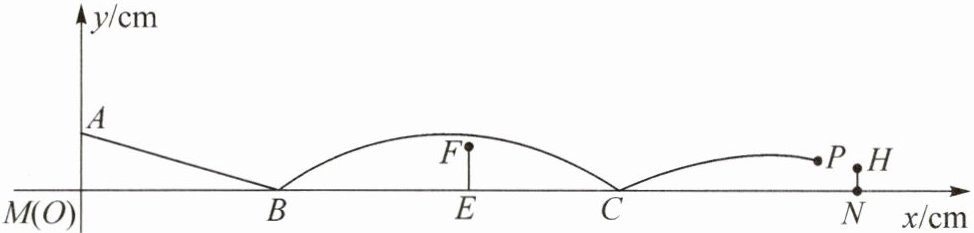 (3)已知球第二次的落点C在球网右侧53 cm处,球再次弹起的最大高度为12.5 cm,队员乙的球拍(看作点H)在点N的正上方8 cm处。若将球拍向前水平推出n cm恰好可接住球(此时球处于下落状态),求n的值。