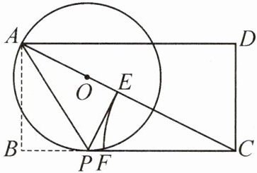 5. (2025·江苏苏州模拟)如图,在矩形 $ ABCD $ 中,$ CD = 2 $,$ AD = 4 $,点 $ P $ 在边 $ BC $ 上,将 $ \triangle ABP $ 沿 $ AP $ 折叠,点 $ B $ 恰好落在对角线 $ AC $ 上的点 $ E $ 处,$ O $ 为 $ AC $ 上一点,$ \odot O $ 经过点 $ A $,$ P $.
