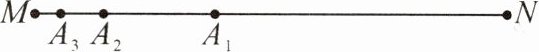 答案:$12. (\frac{3-\sqrt{5}}{2})^{2025}a $解析:因为$ MN=a,A_{1} $是线段 MN 的黄金分割点$ (A_{1}M<A_{1}N),$所以$ A_{1}N=\frac{\sqrt{5}-1}{2}a,$所以$ A_{1}M=MN-A_{1}N=\frac{3-\sqrt{5}}{2}a. $同理可得$ A_{2}M=(\frac{3-\sqrt{5}}{2})^{2}a,A_{3}M=(\frac{3-\sqrt{5}}{2})^{3}a,···. $依此类推,则$ A_{2025}M=(\frac{3-\sqrt{5}}{2})^{2025}a.$