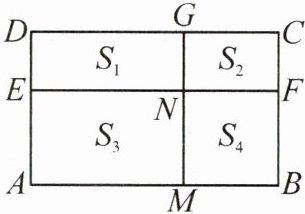 11. (2025·江苏无锡模拟)如图,$ M $ 是矩形 $ ABCD $ 的边 $ AB $ 的黄金分割点,且 $ AM > BM $,$ AD = AM $,$ BF = BM $,$ EF $ 和 $ MG $ 把矩形 $ ABCD $ 分成面积分别为 $ S_{1} $,$ S_{2} $,$ S_{3} $,$ S_{4} $ 的四个小矩形,$ EF $ 与 $ MG $ 相交于点 $ N $. 给出下列结论:① $ N $ 是线段 $ MG $ 的黄金分割点;② $ S_{1} = S_{4} $;③ $ \dfrac{S_{2}}{S_{3}} = \dfrac{\sqrt{5} - 1}{2} $. 其中正确的是(