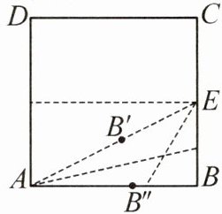 答案:10. 设正方形纸片 ABCD 的边长为 x,则 ∠B=90°,BC=AB=x. 因为 E 为 BC 的中点,所以$ EB' = EB=\frac{1}{2}BC=\frac{1}{2}x,$所以$ AE=\sqrt{AB^{2}+EB^{2}}=\frac{\sqrt{5}}{2}x,$所以$ AB''=AB'-AE-EB'=\frac{\sqrt{5}-1}{2}x,$所以$ \frac{AB''}{AB}=\frac{\sqrt{5}-1}{2}. $故 B''是线段 AB 的黄金分割点.
