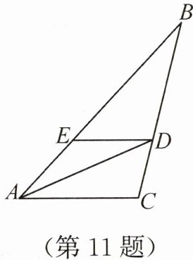 11. (2025·江苏泰州模拟)如图,在△ABC中,AD平分∠BAC,交边BC于点D,且CD=$$\frac { 1 } { 3 }$$BC,DE//AC,交边AB于点E.若DE=4,则BE的长为