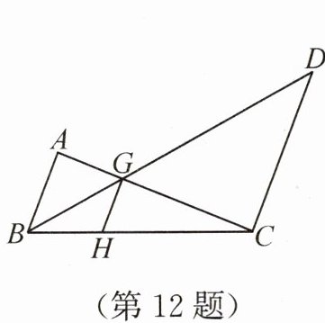 12. 如图,已知AB//GH//CD,点H在BC上,AC与BD交于点G.若AB=2,CD=4,则GH的长为