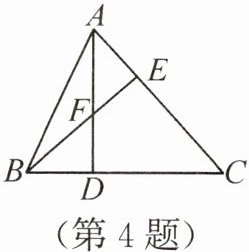 4. 如图,在$\triangle ABC$中,$AB=4,BC=5$,点$D,E$分别在边$BC,AC$上,$CD=2BD,CE=2AE$,$BE$交$AD$于点$F$,则$\triangle AFE$面积的最大值是