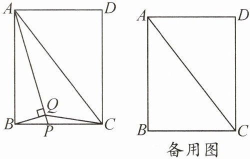 14. 如图,在矩形$ABCD$中,$AC$为对角线,$P$为边$BC$上一动点,连接$AP$,过点$B$作$BQ⊥AP$,垂足为$Q$,连接$CQ$.