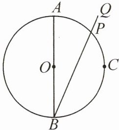 答案:10. 4 解析:连接AP,AQ.因为AB为$\odot O$的直径,所以∠APB=90°.因为BP·BQ=AB²,所以$\frac{BQ}{BA}=\frac{BA}{BP}$.因为∠QBA=∠ABP,所以△QBA∽△ABP,所以∠QAB=∠APB=90°,所以QA始终与AB垂直.当点P在点A处时,点Q与点A重合.当点P在点C处时,QA=AB=4,此时点Q运动到最远处,所以点Q运动的路径长为4.