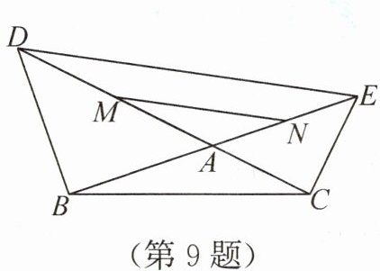 9. (2025·江苏连云港模拟)如图,在$\triangle ABC$中,$∠BAC=135^{\circ },BC=10$,分别以$AB,AC$为直角边向外作等腰直角三角形$ABD$和等腰直角三角形$ACE$($∠ABD=∠ACE=90^{\circ }$),$M,N$分别是$AD,AE$的中点,连接$MN$,则$DE=$