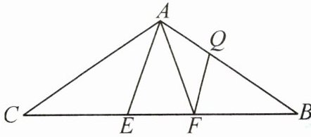 推理能力 如图,在等腰三角形$ABC$中,$AB=AC$,点$E,F$在线段$BC$上,点$Q$在线段$AB$上,且$CF=BE,AE^{2}=AQ· AB$. 求证: