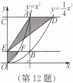 12. 如图,在平面直角坐标系中,$ O $ 是原点,垂直于 $ x $ 轴的直线 $ AB $ 分别与抛物线 $ C_1: y = x^2(x \geq 0) $ 和抛物线 $ C_2: y = \frac{1}{4}x^2(x \geq 0) $ 交于点 $ A $,$ B $,过点 $ A $ 作 $ CD // x $ 轴,分别与 $ y $ 轴和抛物线 $ C_2 $ 交于点 $ C $,$ D $,过点 $ B $ 作 $ EF // x $ 轴,分别与 $ y $ 轴和抛物线 $ C_1 $ 交于点 $ E $,$ F $,连接 $ AE $,$ DE $,$ OF $,则 $ \frac{S_{\triangle OFE}}{S_{\triangle EAD}} = $