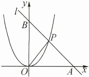 13. 如图,在平面直角坐标系中,$ O $ 是原点,直线 $ l $ 经过 $ A(4,0) $,$ B(0,4) $ 两点,它与抛物线 $ y = ax^2 $ 在第一象限内相交于点 $ P $. 若 $ \triangle AOP $ 的面积为 $ \frac{9}{2} $,求 $ a $ 的值.