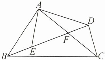 推理能力 如图,在四边形$ABCD$中,$AC$,$BD$相交于点$F$,点$E$在$BD$上,且$\dfrac{AB}{AE} = \dfrac{BC}{ED} = \dfrac{AC}{AD}$.
