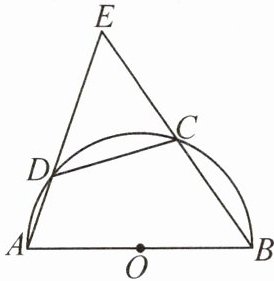 几何直观 如图,四边形$ABCD$内接于半圆$O$,$AB$是直径,$C$是$\overset{\frown}{BD}$的中点,延长$AD$交$BC$的延长线于点$E$.