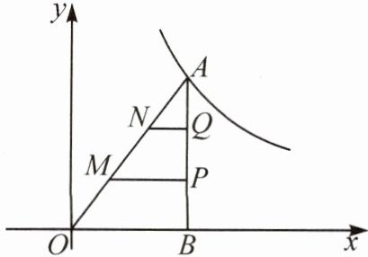 10. 如图,△ABO的顶点A在函数y=k/x(x>0)的图像上,顶点B在x轴上,∠ABO=90°,过边AO的三等分点M,N分别作x轴的平行线交AB于点P,Q.若四边形MNQP的面积为3,则k的值为(