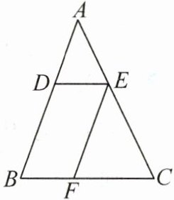 7. 如图,在△ABC中,DE//BC,EF//AB.若$S_{△ADE}=4,S_{△EFC}=9,$求△ABC的面积.