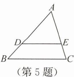 5. (教材P74习题2变式)如图,在△ABC中,D,E分别是边AB,AC上的点,且DE//BC.若△ADE与△ABC周长的比为2:3,AD=4,则DB=
