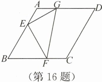 16. 如图,点E,F,G分别在菱形ABCD的边AB,BC,AD上,AE=1/3AB,CF=1/3CB,AG=1/3AD.若△EFG的面积为6,则菱形ABCD的面积为