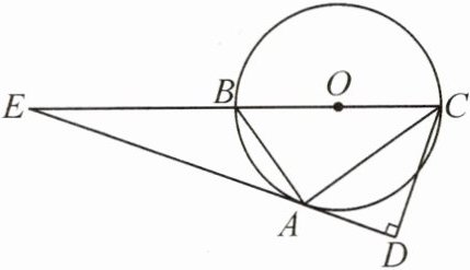 答案:14. (1)直线EA与⊙O相切.理由如下:连接OA.因为DA·AC=DC·AB,所以$\frac{AB}{DA}=\frac{AC}{DC}$.因为BC是⊙O的直径,所以∠BAC=90°.因为EA⊥DC,所以∠ADC=90°,所以∠BAC=∠ADC,所以△ABC∽△DAC,所以∠ABC=∠DAC.因为OA=OB,所以∠OAB=∠ABC,所以∠OAB=∠DAC,所以∠OAC+∠DAC=∠OAC+∠OAB,所以∠OAD=∠BAC=90°,所以EA⊥OA.因为OA是⊙O的半径,所以直线EA与⊙O相切.