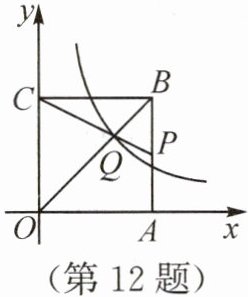 12. 如图,正方形OABC的边长为6,点A,C分别位于x轴、y轴上,点P在AB上,CP交OB于点Q,函数y=k/x的图像经过点Q.若$S_{△BPQ}=1/4S_{△OCQ},$则k的值为