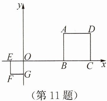11. 如图,已知正方形$ABCD$和正方形$OEFG$是位似图形,点$O$,$A$,$F$的坐标分别为$(0,0)$,$(3,2)$,$(-1,-1)$,则这两个正方形的位似中心的坐标为