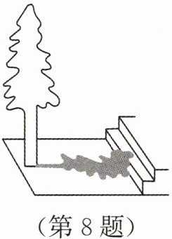 8. 数学兴趣小组的同学要测量一棵树的高度。在阳光下,一名同学测得一根竖直放置的长为 $ 1 \, \mathrm{m} $ 的竹竿的影长为 $ 0.4 \, \mathrm{m} $,同一时刻,另一名同学在测量树的高度时,发现树的影子不全落在地面上,有一部分落在教学楼的第一级台阶上,测得该部分影子的长为 $ 0.2 \, \mathrm{m} $,一级台阶的高为 $ 0.3 \, \mathrm{m} $(如图)。若此时落在地面上的影长为 $ 4.4 \, \mathrm{m} $,则这棵树的高度为