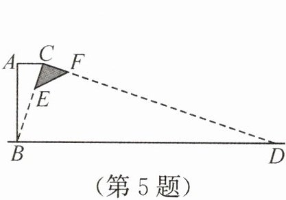 5. 如图为某种型号的台灯的横截面图,台灯灯柱AB长30cm,且与水平桌面垂直,灯臂AC长为10cm,灯头的横截面为直角三角形CEF(∠ECF=90°),当灯臂AC与灯柱AB垂直时,沿边CE射出的光线刚好射到底座点B.若不考虑其他因素,则该台灯在桌面上可照亮的宽度BD为(