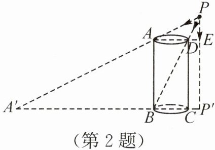 2. (2025·江苏无锡模拟)一圆柱形器皿在点光源P下的投影如图所示,已知AD为该器皿底面圆的直径,且AD=3,CD为该器皿的高,CD=6,CP'=1,点D在点光源P下的投影刚好位于器皿底与器皿壁的交界处,即点B处,点A在点光源P下的投影为点A',则点A'到CD的距离为(