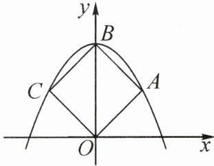 12. (2023·广东改编)如图,在平面直角坐标系中,$ O $ 是原点,二次函数 $ y = ax^{2}+c $ 的图像经过正方形 $ OABC $ 的三个顶点 $ A $,$ B $,$ C $,且点 $ B $ 在 $ y $ 轴上,则 $ ac = $