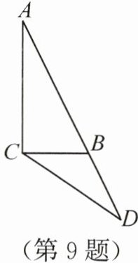 9. 如图,在△ABC 中,∠ACB = 90°,点 D 在线段 AB 的延长线上,连接 CD. 若 AB = 2DB,tan∠BCD = $\frac{2}{3}$,则 tan∠ABC 的值为(