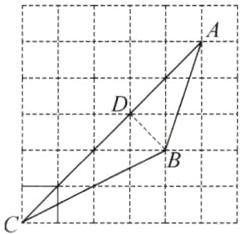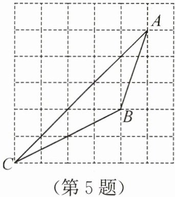 答案:5. $\frac{1}{2}$ 解析:如图,连接BD.设每个小正方形的边长都为1,则AD=2$\sqrt{2}$,BD=$\sqrt{2}$,AB=$\sqrt{10}$,所以AD²+BD²=10,AB²=10,所以AD²+BD²=AB²,所以∠ADB=90°,所以tanA=$\frac{BD}{AD}$=$\frac{1}{2}$.