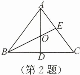 2. 如图,在△ABC 中,O 是角平分线 AD,BE 的交点. 若 AB = AC = 10,BC = 12,则 tan∠OBD 的值是(