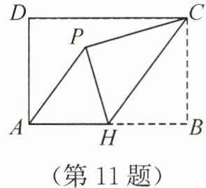 11. 如图,在矩形 ABCD 中,AB = 3,BC = 2,H 是 AB 的中点,将△CBH 沿 CH 折叠,点 B 落在矩形内点 P 处,连接 AP,则 tan∠HAP =