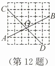 12. 在如图所示的正方形网格中,每个小正方形的边长均为 1,点 A,B,C,D 都在格点上(网格线的交点叫做格点),AB 与 CD 相交于点 O,则 tan∠BOD =