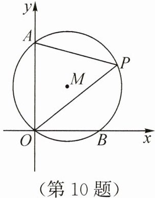10. 如图,在平面直角坐标系中,$\odot M$经过$O(0,0)$,$A(0,4)$,$B(3,0)$三点,$P$为$\odot M$上一点,且在第一象限,则$\sin P$的值为