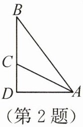 答案:2.A 解析:由题意,得$\angle D=90°,\frac{CD}{AD}=\frac{1}{2}$.设$CD=x\mathrm{ m}$,则$AD=2x\mathrm{ m}$,所以$AC=\sqrt{AD^2+CD^2}=\sqrt{5}x\mathrm{ m}$.又$AC=3\sqrt{5}\mathrm{ m}$,所以$\sqrt{5}x=3\sqrt{5}$,解得$x=3$,所以$CD=3\mathrm{ m}$,$AD=6\mathrm{ m}$.因为$AB=10\mathrm{ m}$,所以$BD=\sqrt{AB^2-AD^2}=8\mathrm{ m}$,所以$BC=BD - CD=5\mathrm{ m}$.故旗杆$BC$的高度为$5\mathrm{ m}$.
