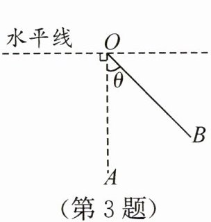 3. 如图,一单摆在重力作用下处于 $OA$ 处(与水平线垂直). 若单摆摆动到 $OB$ 处,旋转角为 $\theta$,此时点 $B$ 相对于点 $A$ 高度上升了 $a$ cm,则单摆的长度为