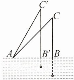 2. (2025·江苏泰州模拟)如图,钓鱼竿 $AC$ 长 6 m,露在水面上的鱼线 $BC$ 长 $3\sqrt{2}$ m,钓者把鱼竿 $AC$ 逆时针转动 $15^{\circ}$到 $AC'$的位置,此时露在水面上的鱼线 $B'C'$的长度是($BC$,$B'C'$均垂直于水面)(