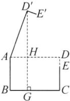 答案:96.4 解析:如图,过点D'作D'G⊥BC于点G,交AD于点H,则∠D'GC=90°.因为四边形ABCD是矩形,所以∠C=∠D=90°,AD//BC,所以四边形CDHG是矩形,D'H⊥AD,所以GH=CD=40cm,∠AHD'=90°,由旋转的性质,得AD'=AD=60cm,∠D'AD=70°,所以D'H=AD'·sin∠D'AD≈60×0.94=56.4(cm),所以D'G=GH+D'H=96.4cm.故点D'到BC的距离约为96.4cm.