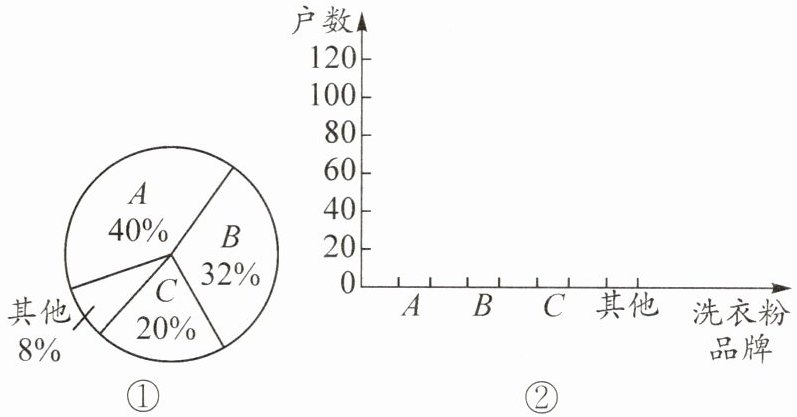 (1) 在图②中,将最近一次购买各品牌洗衣粉的用户情况绘制成条形统计图;
